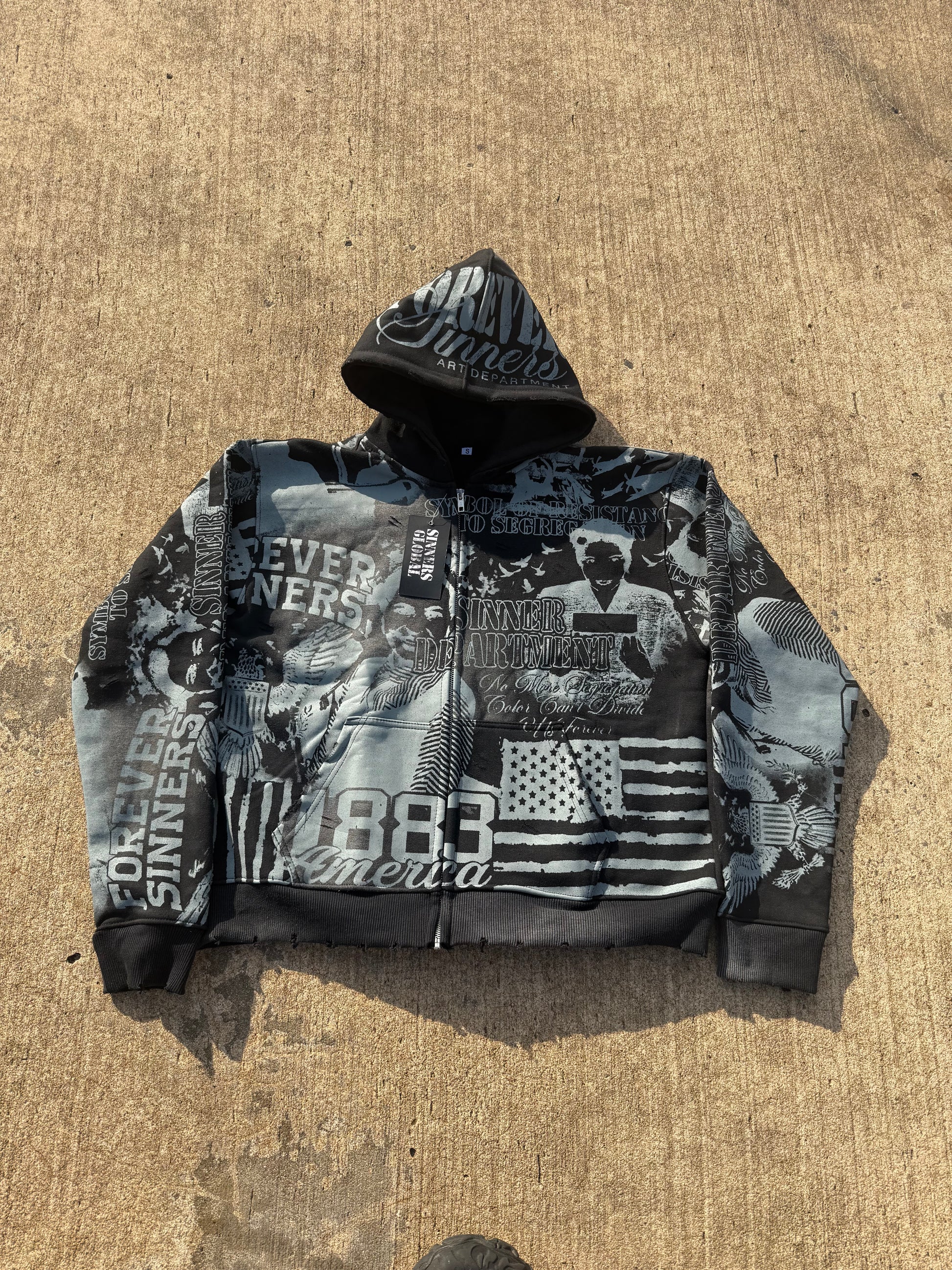 Features premium screen print and distressing — the perfect jacket to keep you warm and stylish all winter long.